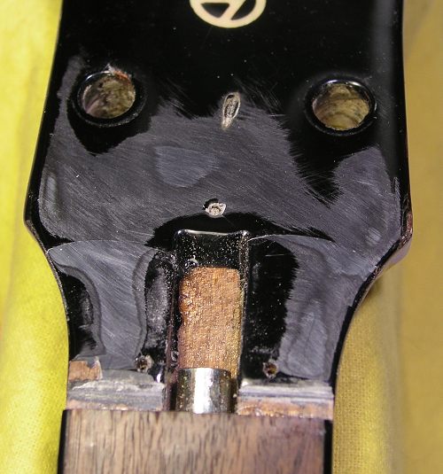 | The wood had split partway into the headstock, and every side of the headstock had some kindof of ding. |