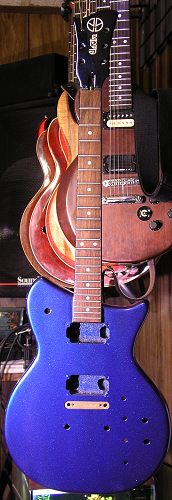 ![]() ![]() . Am I nuts or is this enough to throw someone off? Yup, it was enough to throw me off. I really enjoyed bringing this one back to life, and Doc, a very good friend on the east coast is now the proud owner of the guitar. Wouldn't you know his favorite color is blue, and one of his handles is "BlueAxe"? I am glad it is where it belongs and he loves the guitar. |