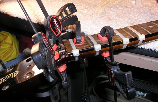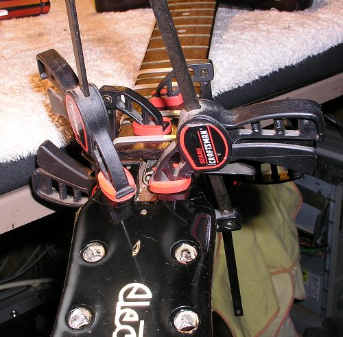 | I managed to use a syringe to slowly inject small amounts of glue into the crack being careful not to load it up next to the truss. Once I had good even and complete coverage on went the clamps and the excess cleaned off. |