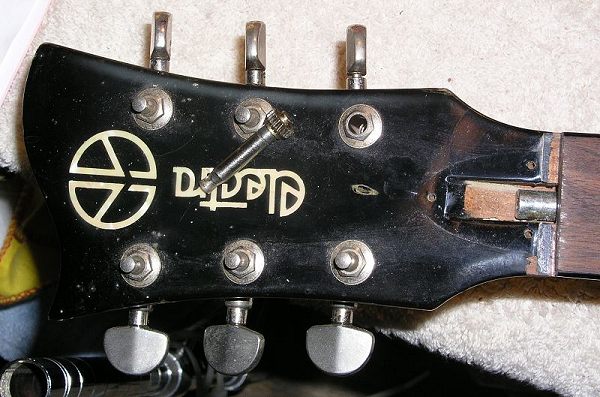 | The wood had split partway into the headstock, and every side of the headstock had some kindof of ding. |